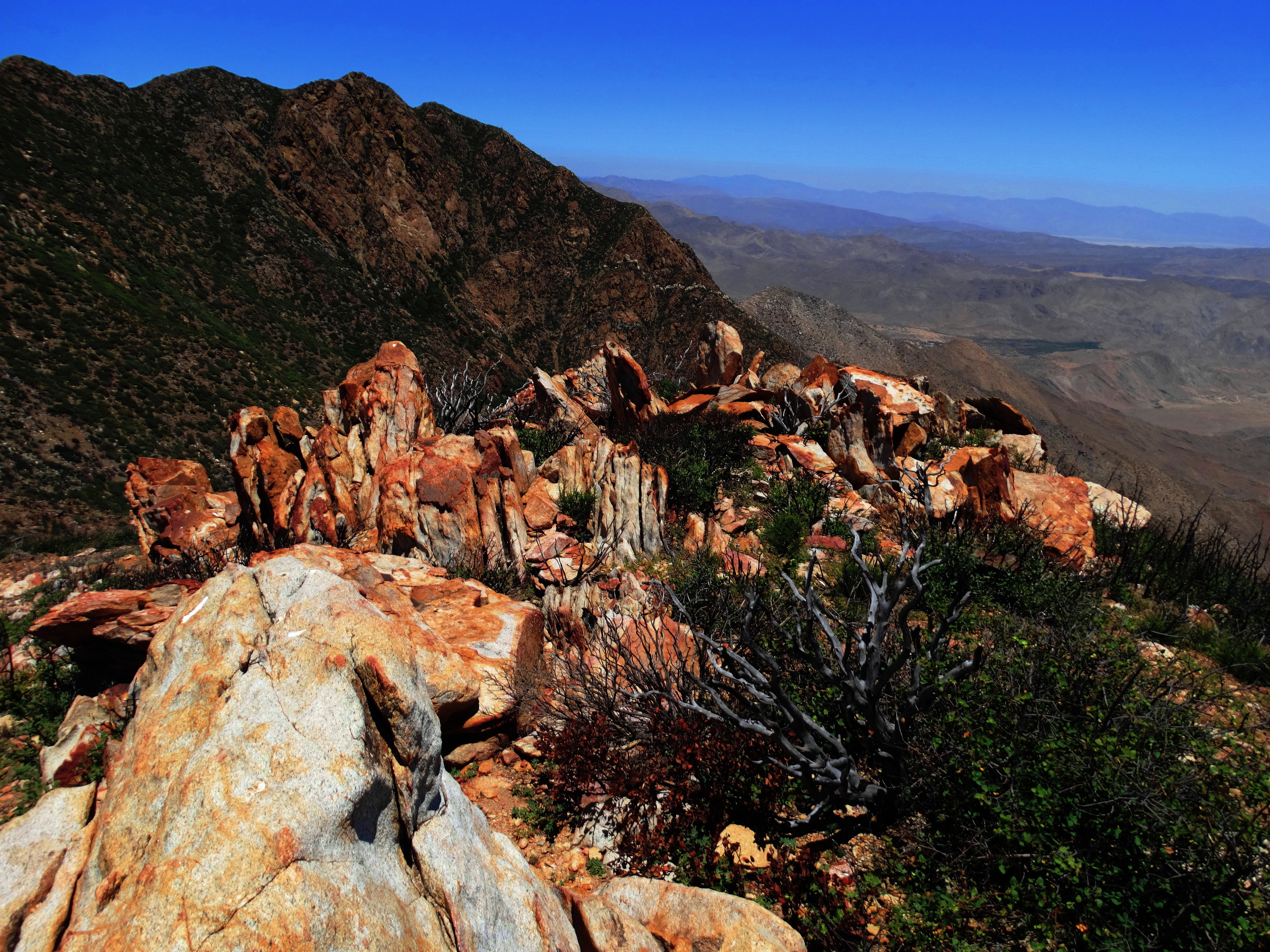 Lots of ’em too! This is the seismically active Laguna Salada Fault that lies about 50 miles east of The Holler. The ridge line is the uplifted side of the fault with rocks pushed up helter-skelter in a major quake millions of years ago. You are looking through the ridge line of the fault in this photo, into the rift valley below that was also created by this massive quake.