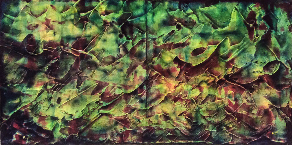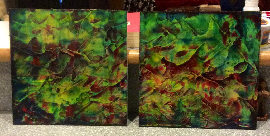 This piece was intentionally painted as one piece with the knowledge that I would break it in half at the seem.