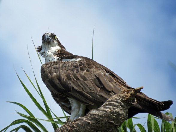 After he moved out of the nest and left it for the youngster to enjoy, I didn’t see him for about a month. Maybe he needed to recuperate and went on a cruise in the Caribbean? Or had some fun in Key West? Mid July I discovered he was back in his “township”. Since then he’s been hanging around. I’ve spotted him perched on the top of a dead palm trunk on the eastern…