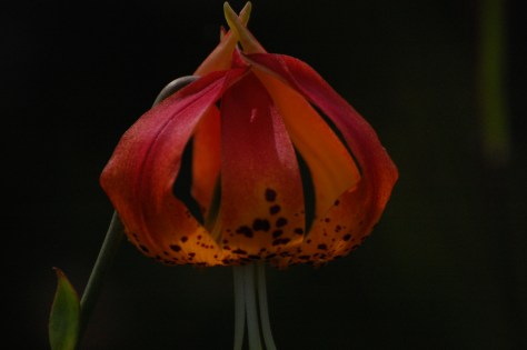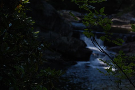 It is quieter at night and I flow beneath a sky lit by the stars and the moon that have been there as long as I can remember. I have asked the oldest tree, a very gnarled and tall guy who lives by a bend in my path; he is a tulip popular and stands 100 feet tall and 20 feet in diameter and has a huge crown, I think he is very wise; I ask if he remembers a time when stars and moon weren’t in the sky, and he does not. I wonder if there was time when only the stars, the moon and I lived here among the mountains. Sometimes I wish the mountains could speak so I could ask them. I know they would have the answer. There was probably a time when we all did live quietly together and there were few of my other friends here. They must have begun to arrive slowly after that. I do remember that there was a gradual increase of life here in the mountains. And…there has been a gradual decrease of life too. But it is improving. Yes, it is improving. Like my new visitor the black bear who wondered up here from the South. He told me there are more families of bear where he came from.