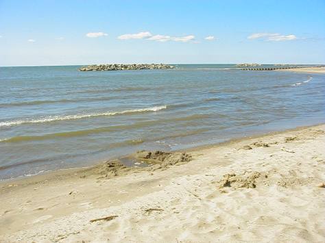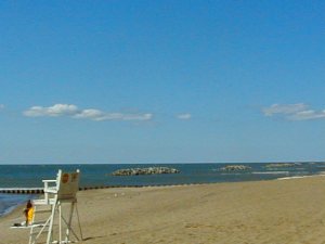 across the umbrellas on the sand.